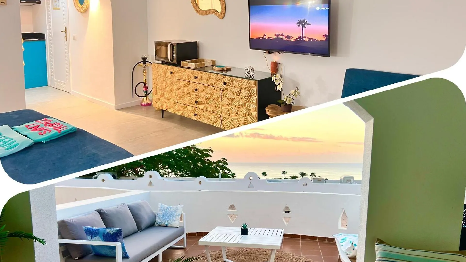 The beachfront 46 ft² Domina Coral Bay Terrazza Suites 3 & 4 Sharm el-Sheikh is a mere 7 minutes by foot from Arena Theatre and features a terrace with outdoor dining areas. Aladin Casino is 0.3 miles away, while Musical Fountain Sharm el-Sheikh is also 2.7 miles from this apartment.